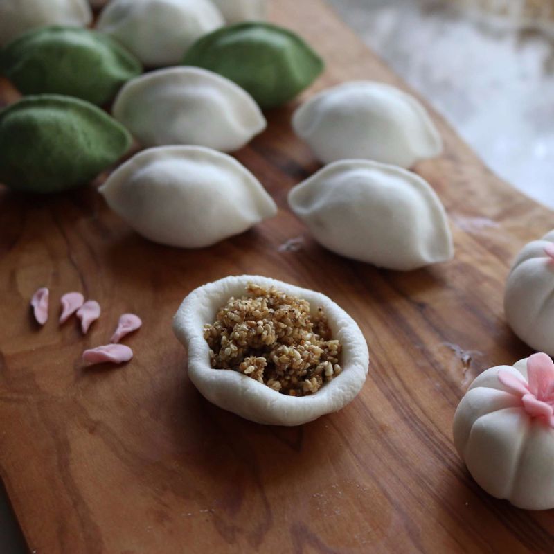 Unarguably, the most symbolic 추석 food, however, is 송편. These are small, half-moon-shaped rice cakes that are steamed over a bed of pine needles, which gives them a wonderfully subtle, fresh aroma. They are typically filled with sweet ingredients like sesame seeds mixed with sugar, chestnuts, or sweetened beans. There's a charming belief that if you make beautifully shaped 송편, you will have a beautiful daughter! So you know if you should have a daughter.. 👶