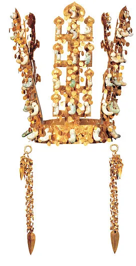 There is one tomb (the 천마총 = Heavenly Horse Tomb) where you're able to go inside and it is essentially a museum of recreated artifacts from the 신라 kingdom including a 금관 (gold crown) like below. Although, it is theorized that the gold crown was more of a burial artifact rather than a day-to-day, ruling-the-kingdom-and-doing-your-kingly-duties kind of crown. ß