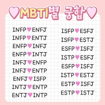 (The same goes for the MBTI types! You just say each letter out loud. So, ENFP becomes이엔에프피)